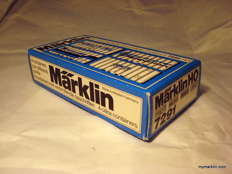 Marklin 7291, lotto di 4 container in scatola originale mai usato. Ideale per carri merci o per creare ambientazione industriale.