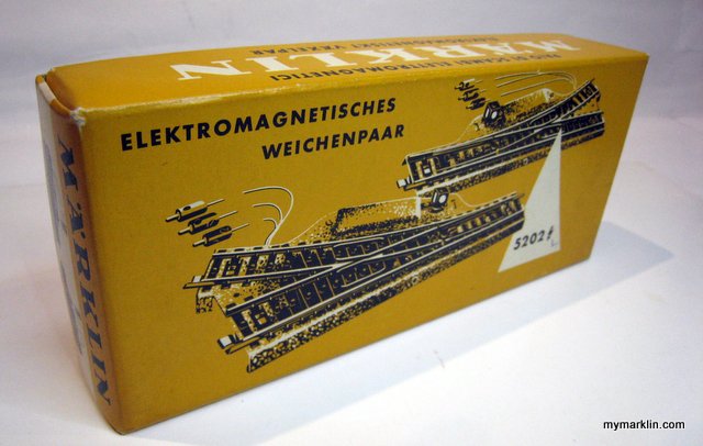 Confezione Marklin 5202 composta da uno scambio verso destra 5204 e uno scambio verso sinistra 5203. Scatola originale e istruzioni. Ottimo stato generale.